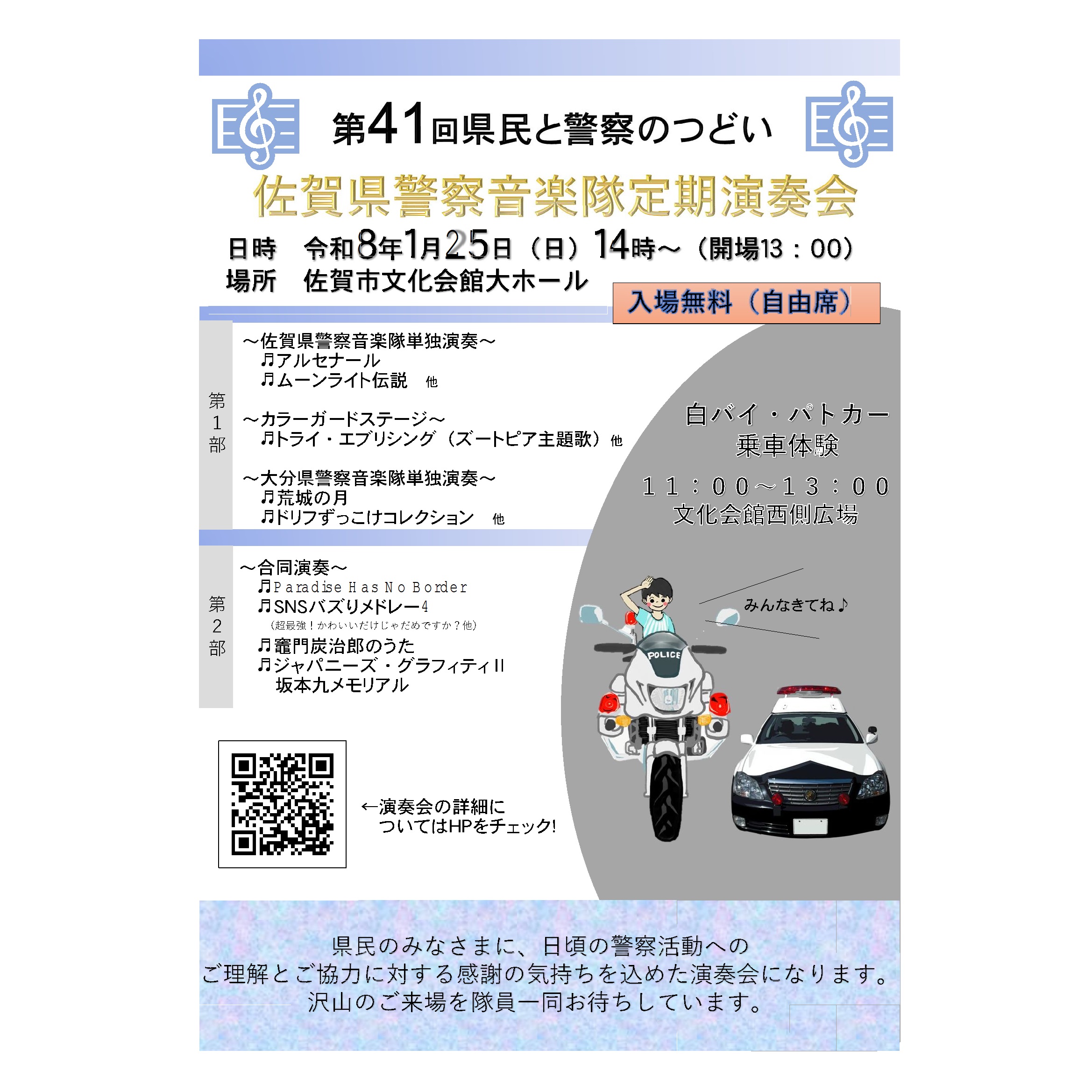 | 名称 | 【1月25日】🎶佐賀県警察音楽隊定期演奏会🚓 |