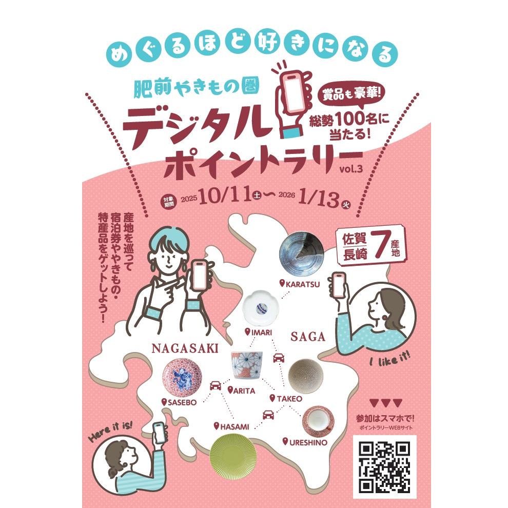 名称 【1/13まで】✨肥前やきもの圏ポイントラリー開催中✨2万円相当の宿泊券🌟が当たるチャンス!