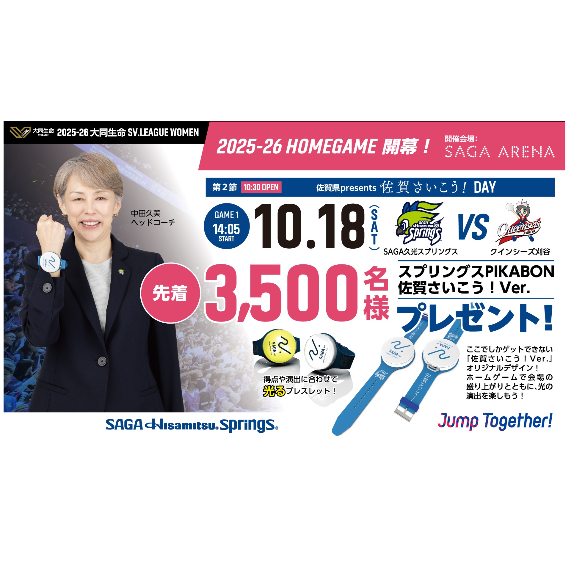 【10月18日】3,500名様に光るブレスレットをプレゼント🌟スプリングスのホームゲーム開幕戦を応援しよう🏐📣