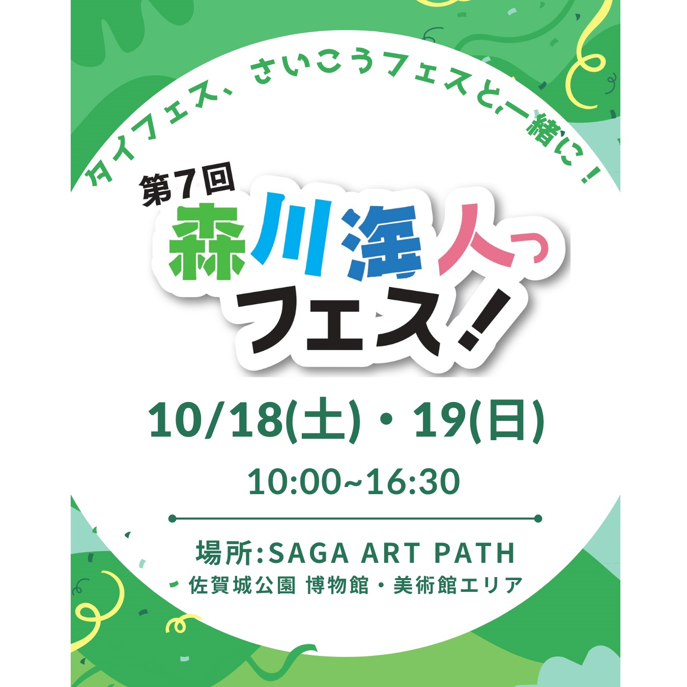 10月18日(土)~19日(日)に、SAGA ART PATH(佐賀城公園博物館・美術館南側エリア)にて「第7回 森川海人っフェス!」を開催します。