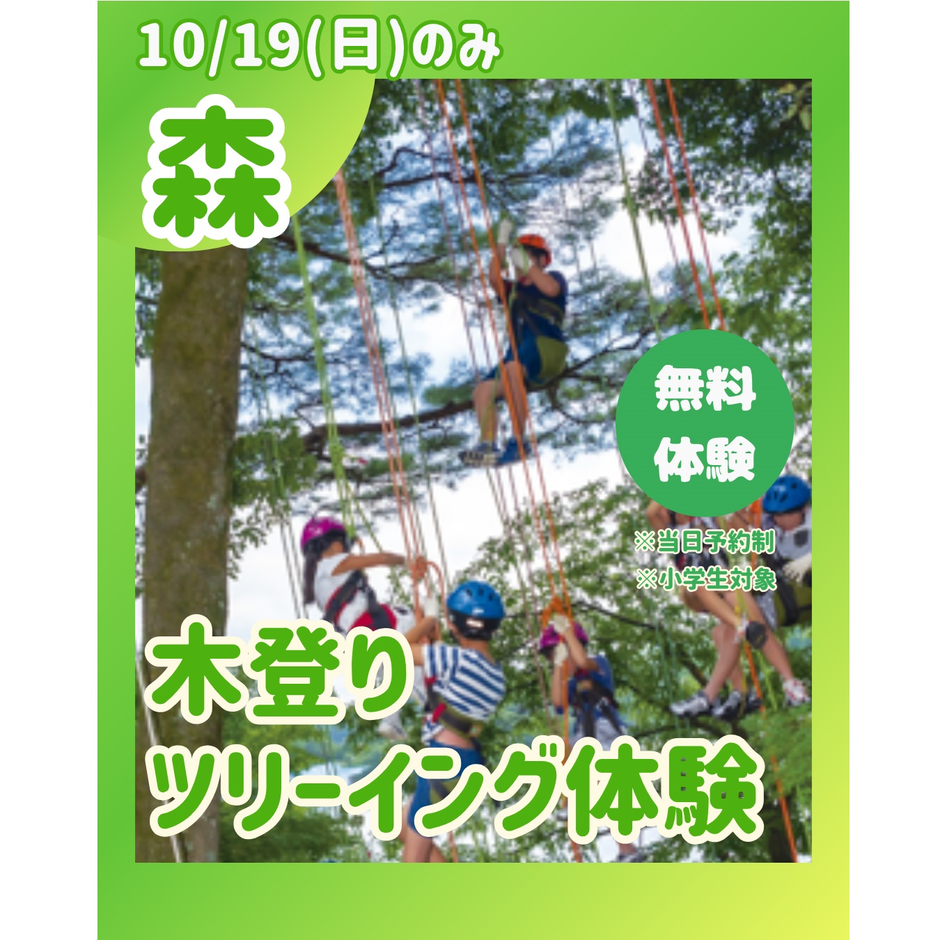 🌳【森の体験】木登りツリーイング!(19日のみ、当日予約)