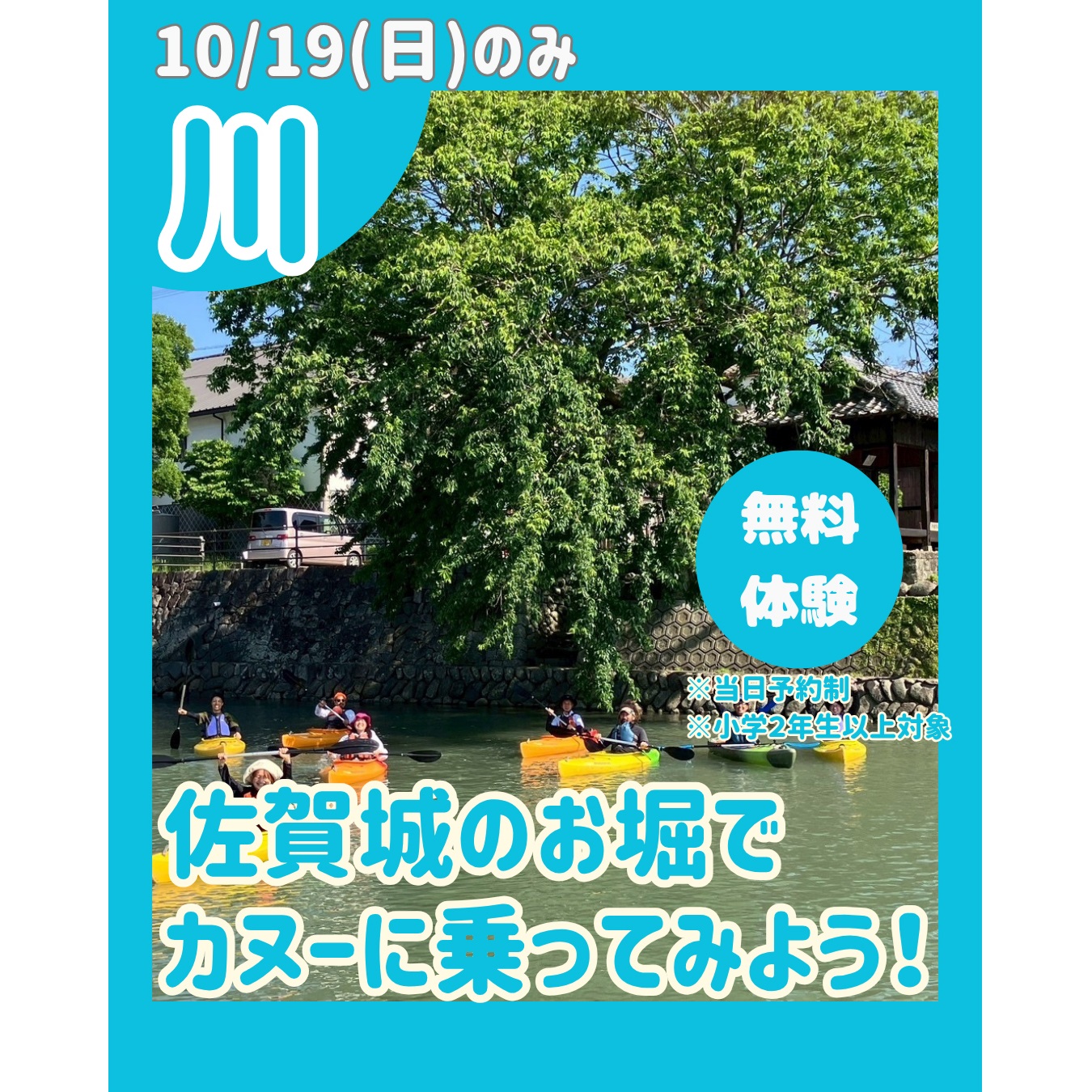 🛶【川の体験】佐賀城のお堀でカヌー(19日のみ、当日予約)