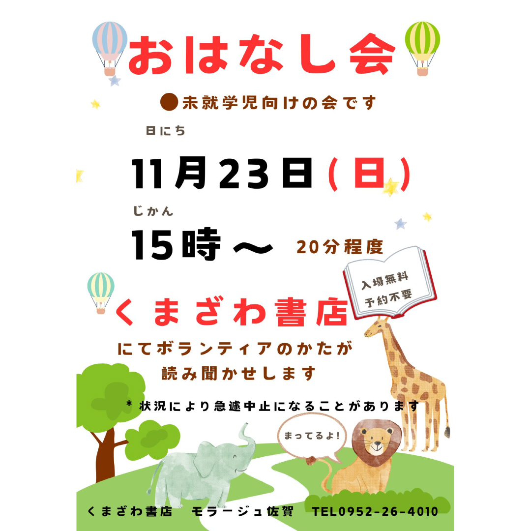 くまざわ書店モラージュ佐賀店では月に一度おはなし会を開催しております!