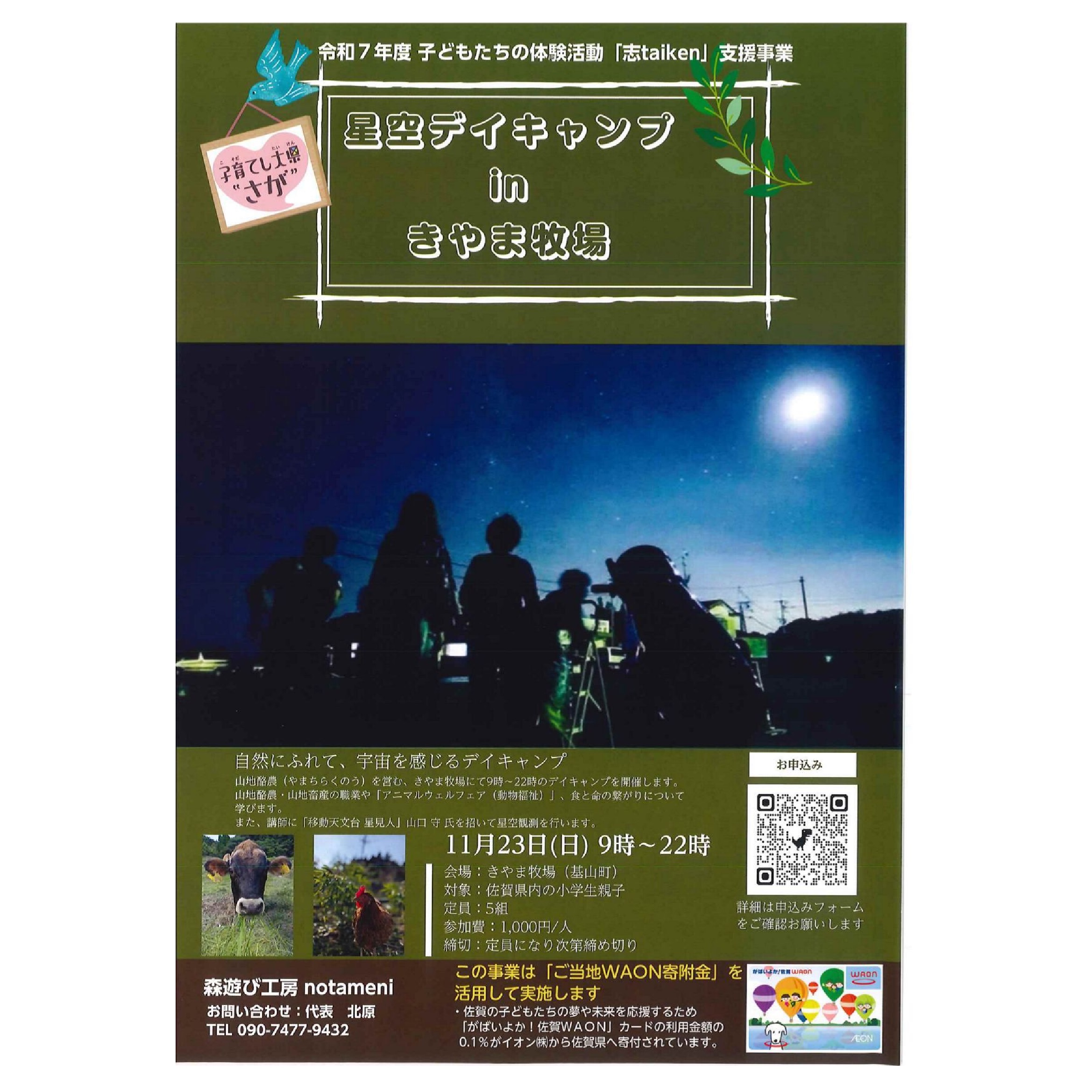 | 名称 | 【11月23日】星空デイキャンプin基山牧場🌠 |