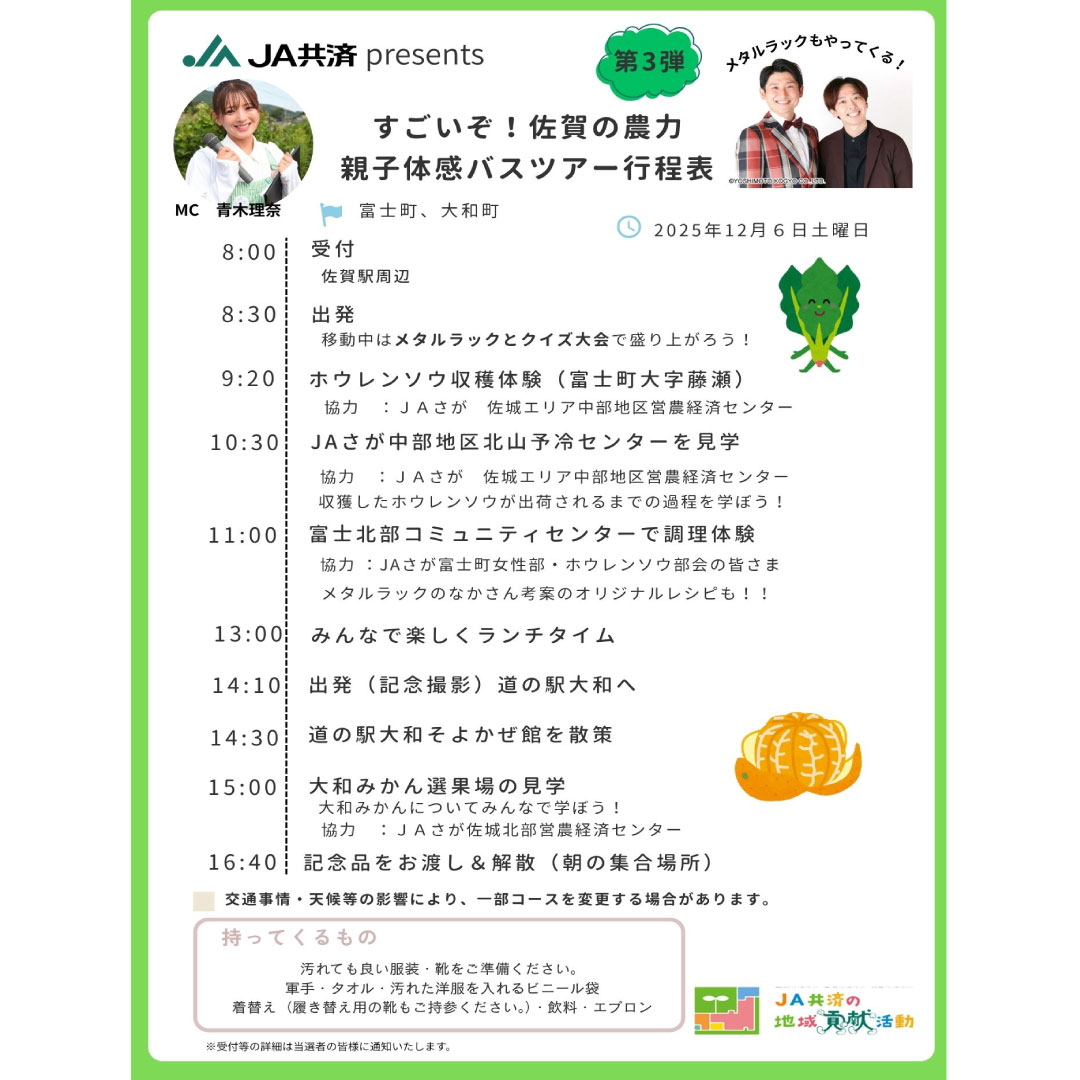 🎤 バスの中では、司会の 青木理奈さん と佐賀県住みます芸人 メタルラック が盛り上げますよ!