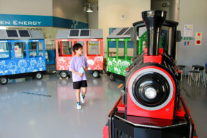 太陽光や風力、水力、水素、バイオマスなどの地球に優しい次世代エネルギーについて目で見て手で触れて、遊びながら楽しく学び、体験できる施設です。